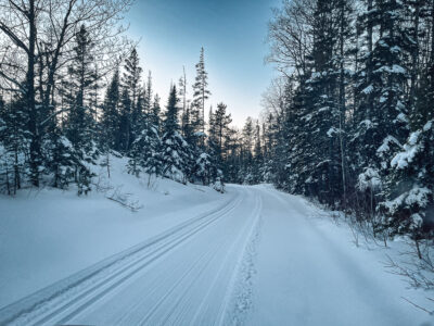 In early 2020, a few dedicated community volunteers undertook an ambitious effort to develop a winter trail network extending eastward from the end of US-41 toward the greater East Bluff area. Through the continued support and dedication of local community members and the Copper Harbor Trails Club, the affectionately named “End of the Road Winter Trail Network” has grown into a diverse 16k network. The majority of the network features a groomed classic track and skate lane, with additional remote trails being tracked when time and conditions permit. The trails are also open to fat bikers, snowshoers, and Backcountry Skiers.